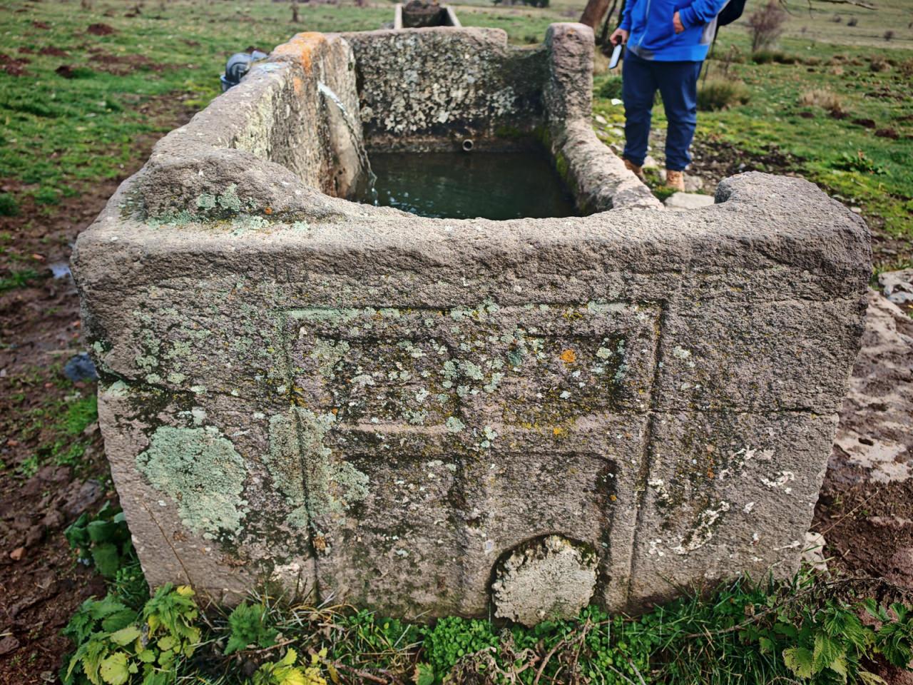Yürüyüş grubu tarafından fotoğraflanan lahitte haç işareti kabartmaları dikkat çekti. Lahidin bir bölümünün ise hayvanların rahat su içmesi için kesildiği fark edildi.