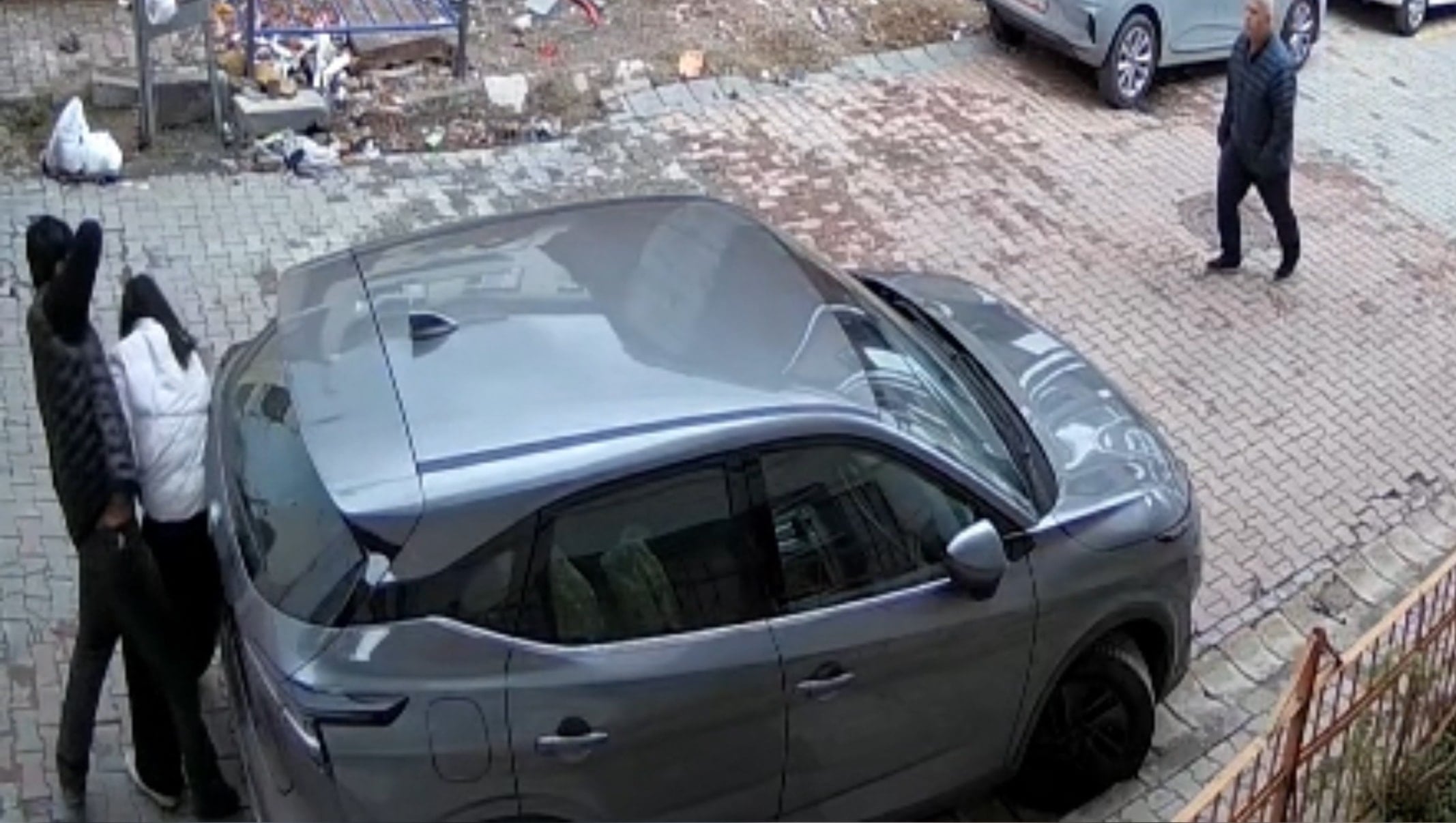 Bilal E. ardından kadını arabanın arkasına sıkıştırarak darp etmeye başladı. Vatandaşların gözü önünde tekme ve yumruklarla saldıran Bilal E., kadına küfür de etti.